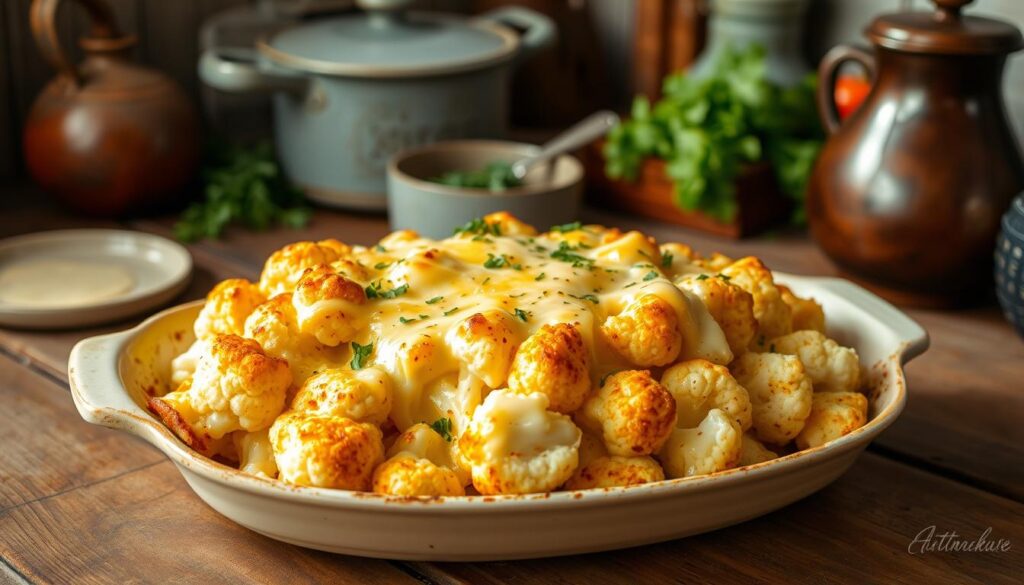 Der Blumenkohlauflauf ist ideal für Familien. Er lässt sich gut vorbereiten und im Voraus zubereiten7. Mit seiner cremigen Sauce und knusprigem Käsetopping ist er ein Genuss8.