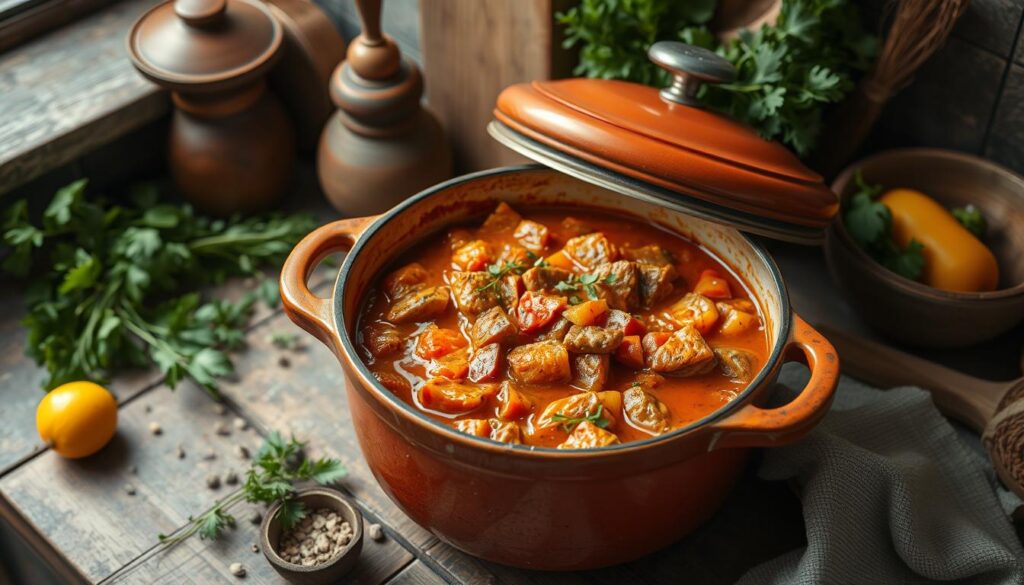 Rindergulasch schmeckt im Dutch Oven besonders gut. Man nutzt eine Gewürzmischung mit Wacholderbeeren und Thymian17. Dazu kommen Zwiebeln, Knoblauch, Bier und Tomaten17.