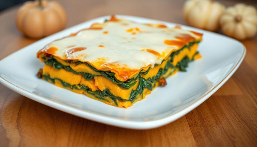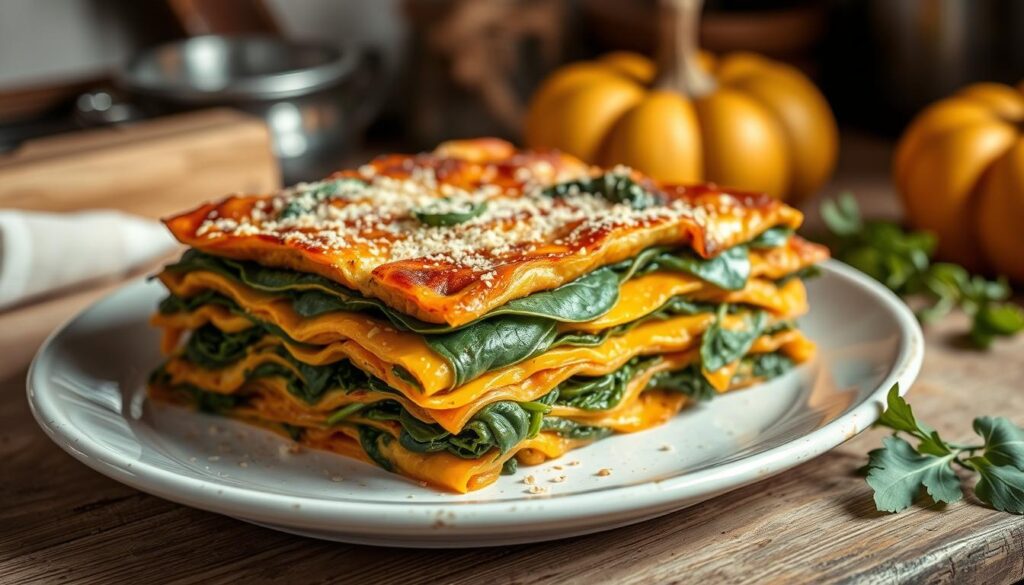 Die Kürbis Spinat Lasagne ist eine leichte Alternative zur klassischen Lasagne. Sie ist ideal für den Herbst. Ihre cremige Textur und die Mischung aus Kürbis und Spinat sind einzigartig.