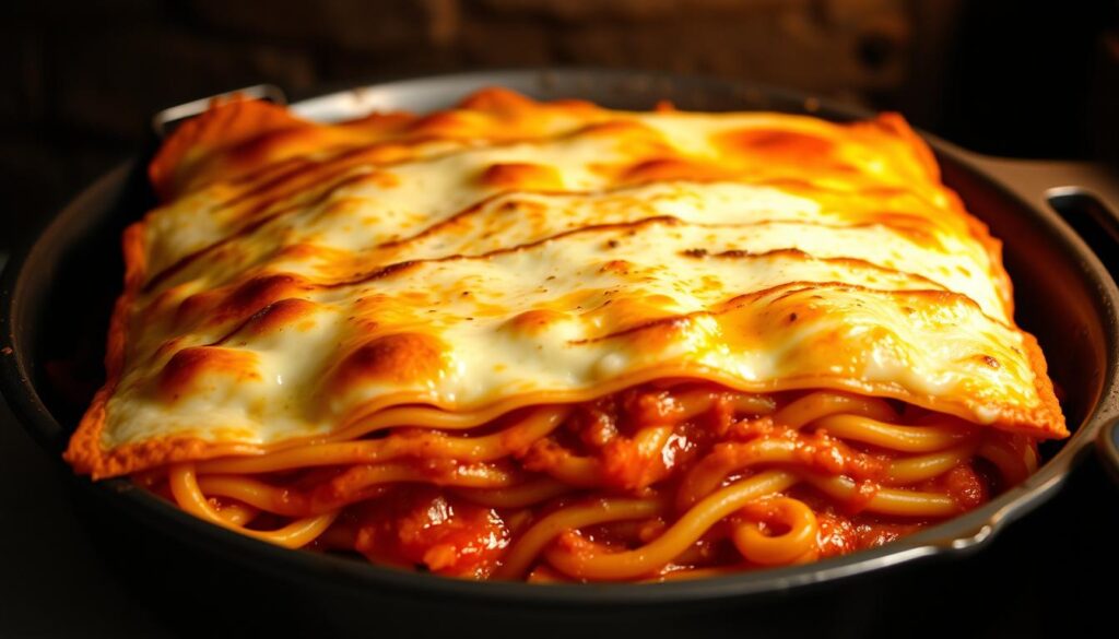 Die leckere Lasagne geht für 40 Minuten in den Ofen bei 200°C11. Dort wird eine goldbraune Kruste auf der Béchamel-Schicht entstehen. Es ist wichtig, die Lasagne richtig zu backen, damit sie nicht trocken wird11.
