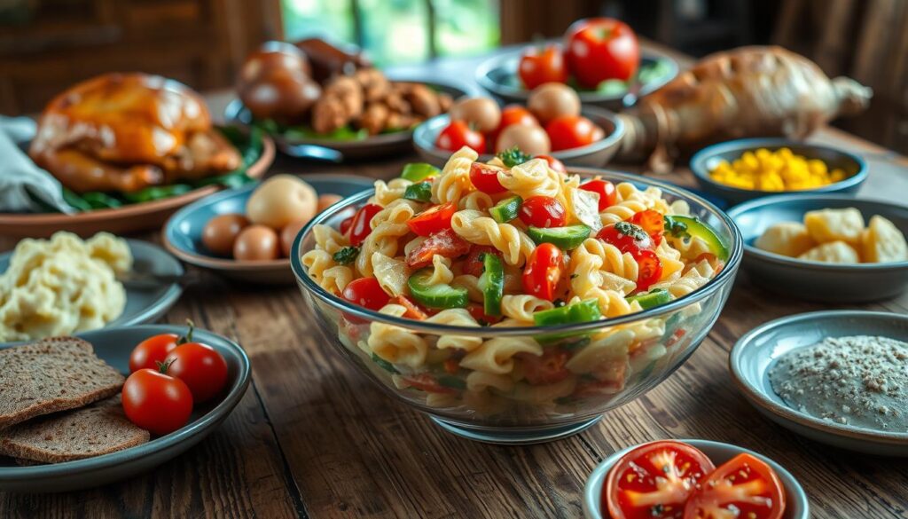 Haben Sie sich schon gefragt, wie vielseitig Nudelsalat sein kann? Es gibt viele Arten, ihn zu machen, von klassisch bis mediterran. Ob für eine Party, ein Picknick oder den Alltag am Büro – hier finden Sie das perfekte Rezept1.