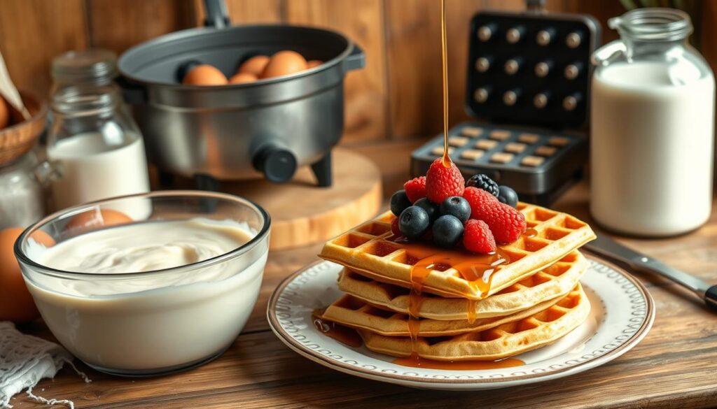 Möchten Sie leckere, fluffige Waffeln genießen? Unser einfaches1 und schnelles1 Waffelteig-Rezept ist perfekt für Sie! Es hat eine Bewertung von 4,5 von 5 Punkten1 und braucht nur 8 Minuten1 zur Zubereitung.